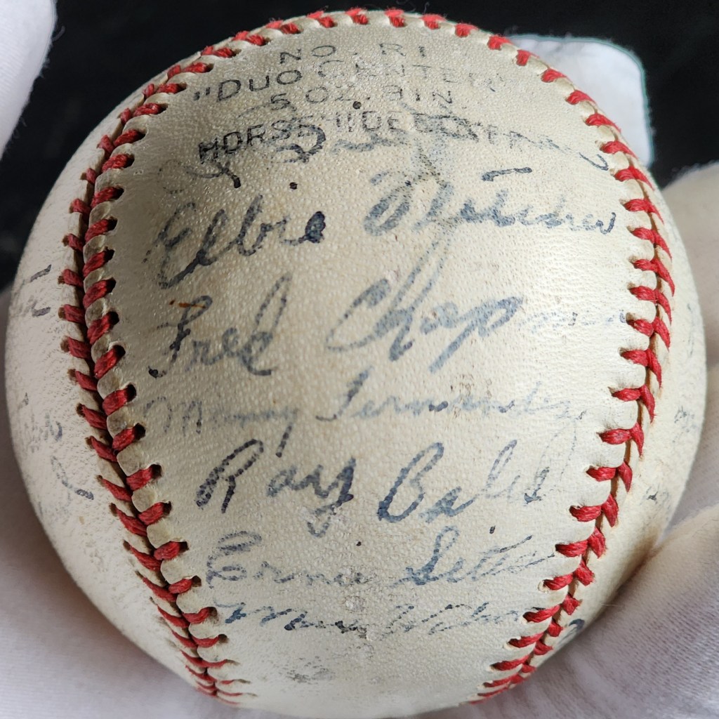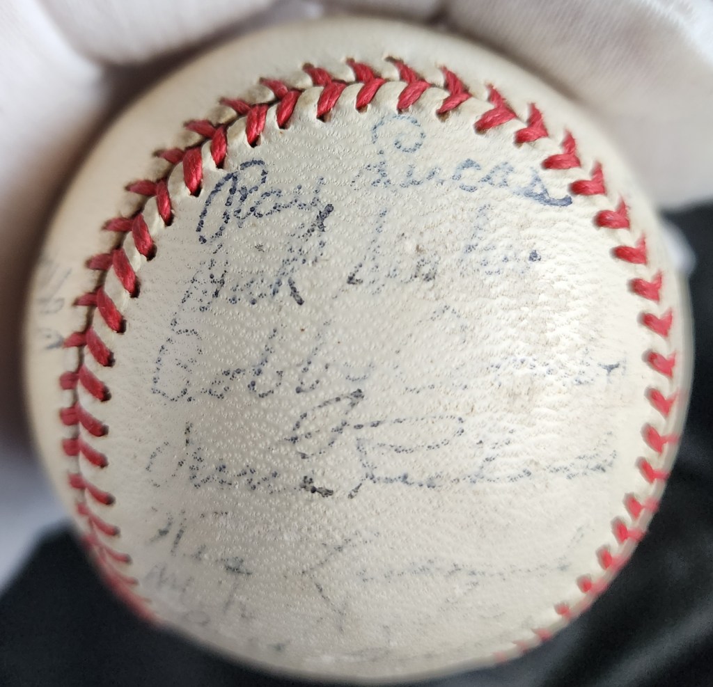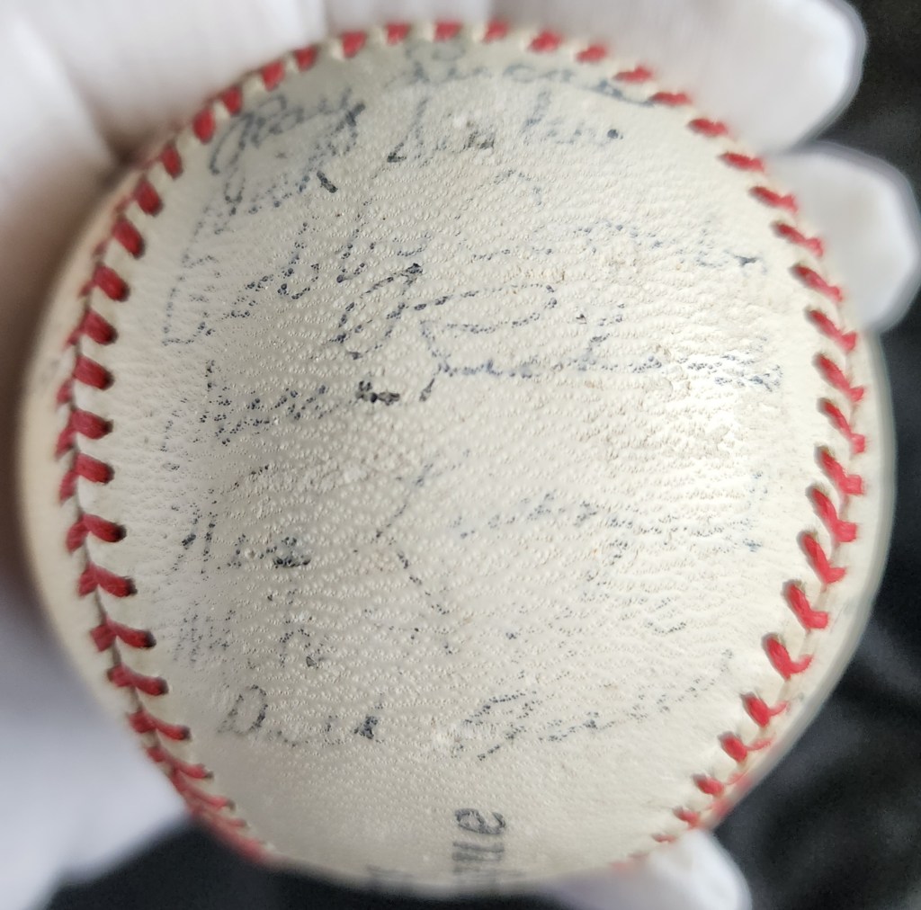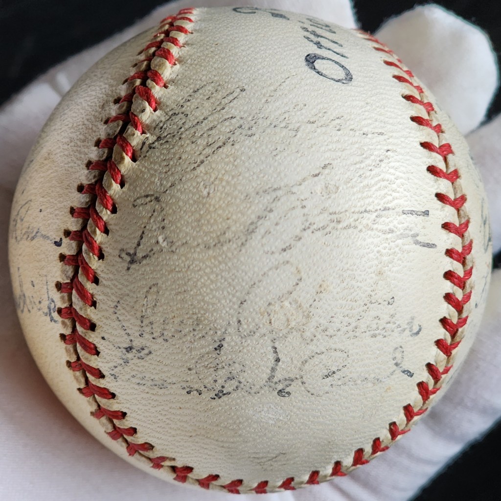 This 1944 Rawlings “Official League” baseball is in outstanding condition and features 19 autographs from 18 members of the team.