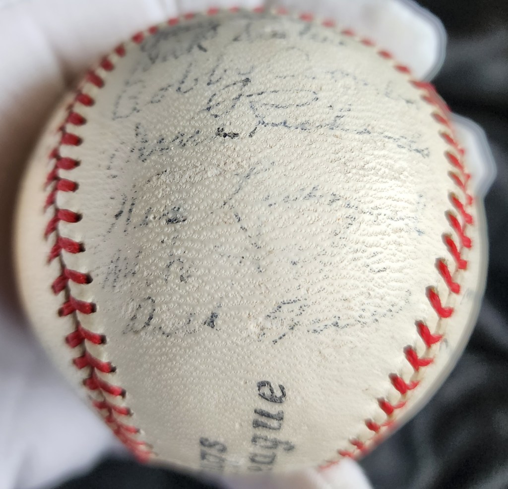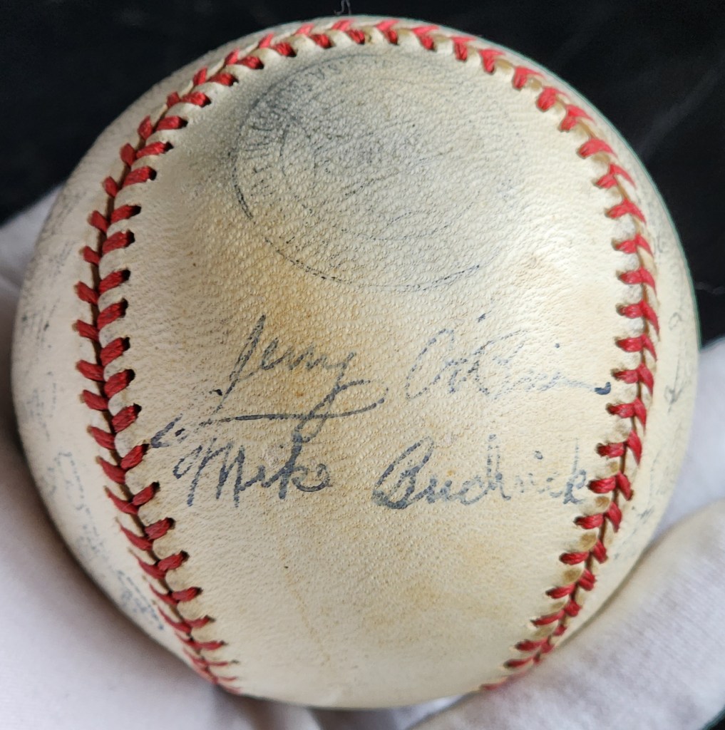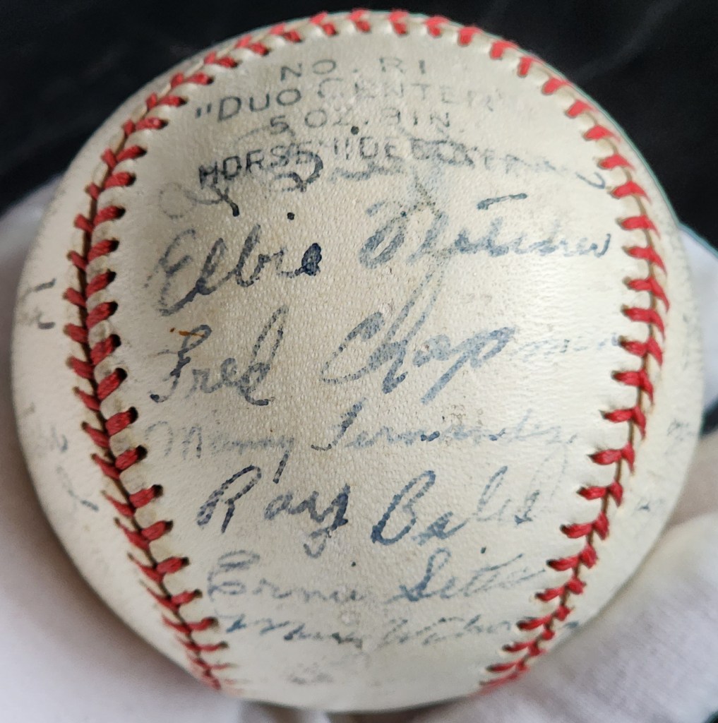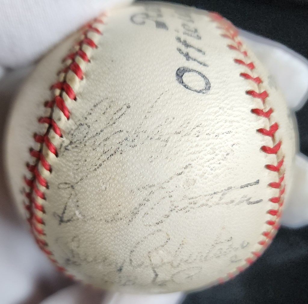 This 1944 Rawlings “Official League” baseball is in outstanding condition and features 19 autographs from 18 members of the team.