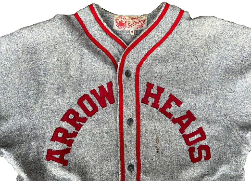 Our research collaboration efforts with other historians and collectors often yield fantastic discoveries. Alex Drury, a 36th Division historian and collector discovered this baseball uniform set listed at auction in November 2022. His keen eye for 36th Division artifacts in conjunction with the unit history opened the door to acquiring this group as a post-VE-Day baseball uniform. With near absolute assurance (absent photographic evidence), this uniform is truly a WWII baseball treasure.