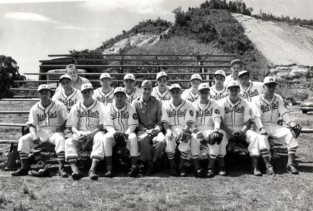 Looking for identification to the “T-Patchers,” the working assumption is that this uniform belonged to one of the teams participating in the intra-division softball or baseball league that went on during occupation. Photos exist of the divisional team competing in the army-wide games, which used a distinct uniform, but evidence from division newspapers indicates there were sub-leagues within the 36th that saw the various regiments, battalions, and headquarters units fighting it out on the baseball diamond. While Alex Drury has only a photo of the 142nd IR team in this league, scorecards show other units participating included the 111th engineers, division artillery HQ, the division artillery battalions, the 111th medical battalion, and more. While many wartime uniforms have colors that did not directly correlate to their branch or patch, Mr. Drury’s best assessment is that because these uniforms were specially made and likely used in an intra-division league, that it could have belonged to the division artillery HQ or one of the divisional artillery battalions, and perhaps medical units. In the absence of photo evidence or documentation of this specific uniform, it a very plausible outcome given the location and period of its origin, the nature of its manufacturing, and the fact that the 36th was the only unit with this name in the region at the time/place it was made.