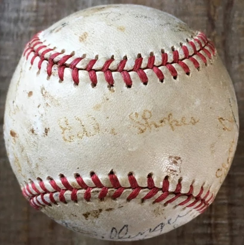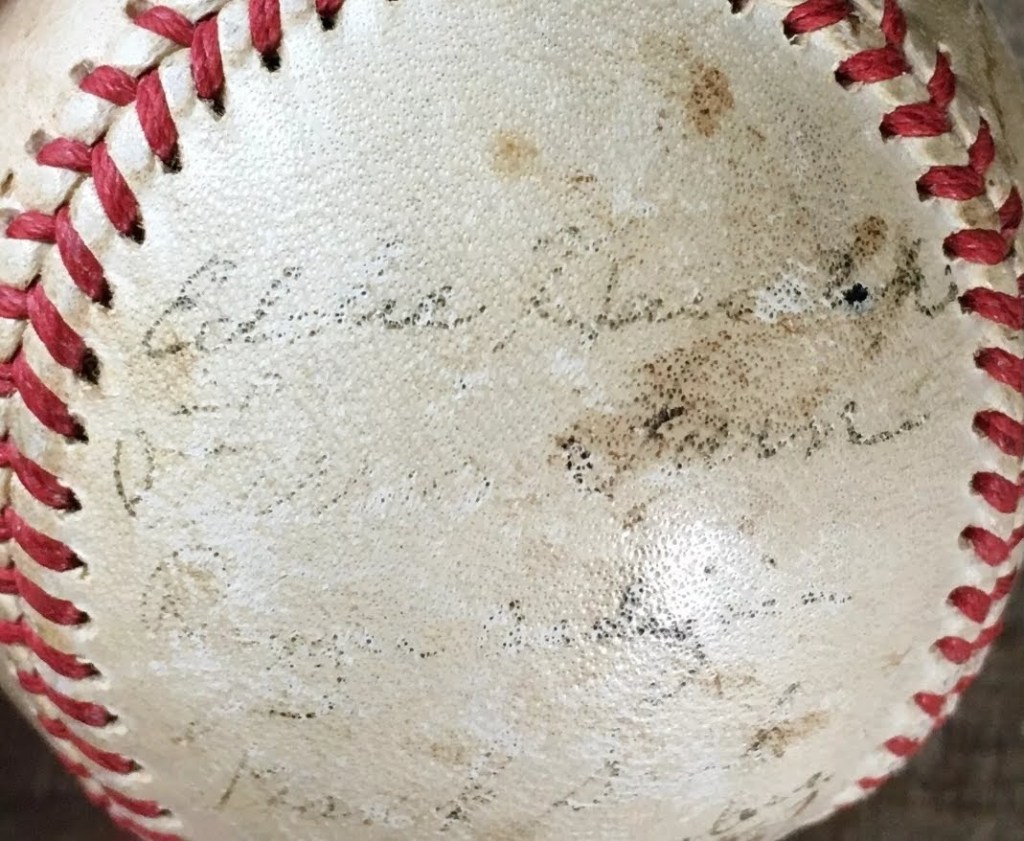 Wartime service baseballs are terribly scarce in the marketplace, however the Professional Base Ball Fund marked baseballs are true rarities within this category. This Rawlings-made ball dates from 1944-45 and was game-used in the South Pacific. With 23 autographs, signed by U.S. Army Air Forces and U.S. Navy players makes this ball difficult to narrow down to a specific year of use. All 16 of the of the identified players whose signatures grace the panels were present on Oahu late in 1944 and midway through 1945.