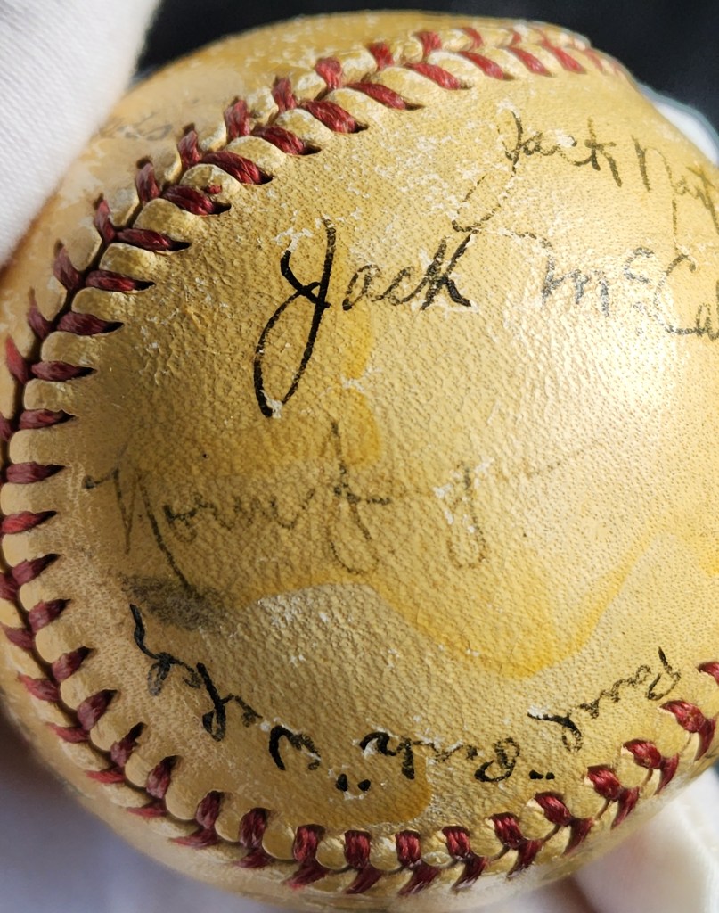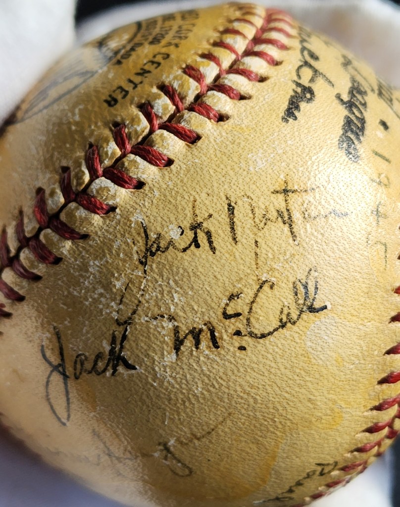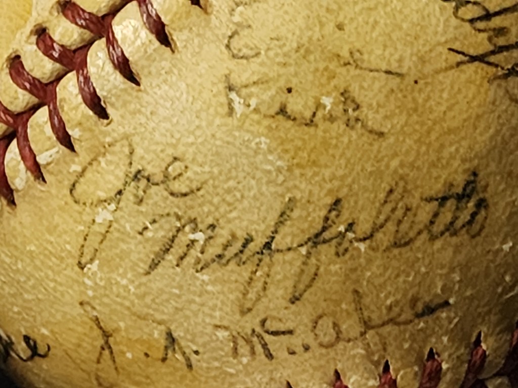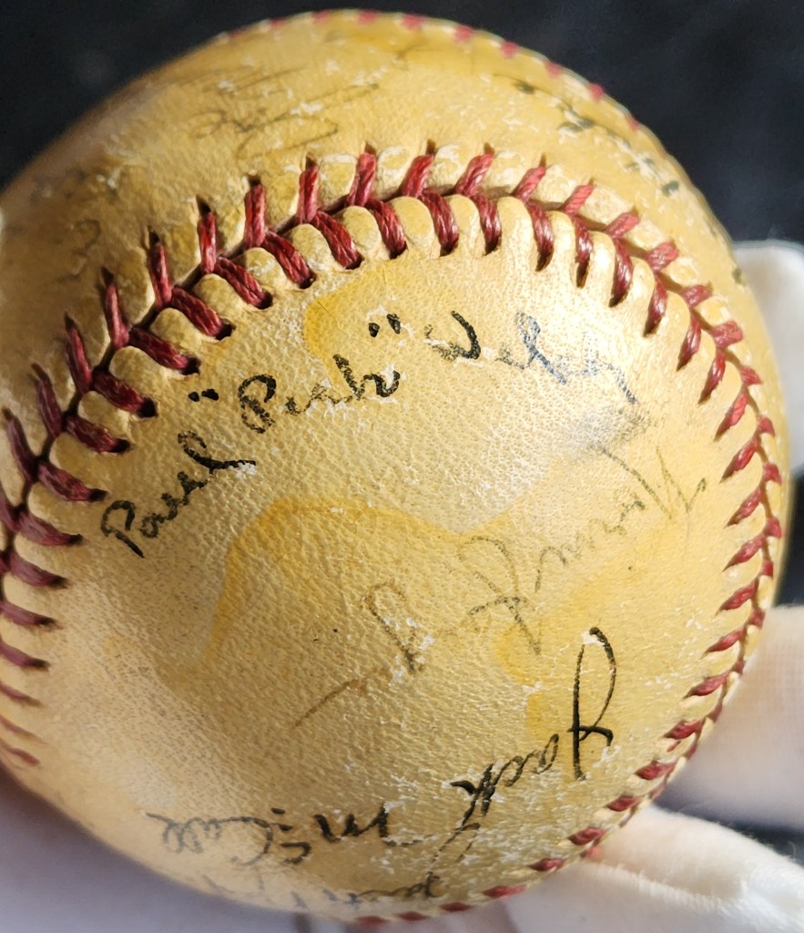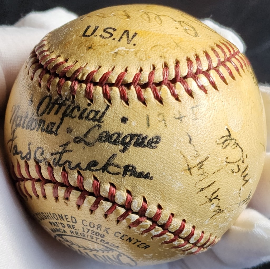 When this ball was listed at auction, it was described as a Navy team. Drawing modest bidder interest, it appears that most were unaware of the identity of the team and the autograph signers were not as interesting. We instantly recognized that this was most-likely a U.S. Coast Guard team due to the presence of signatures from two known Coast Guardsmen, Doyle Lade and Randy Gumpert.