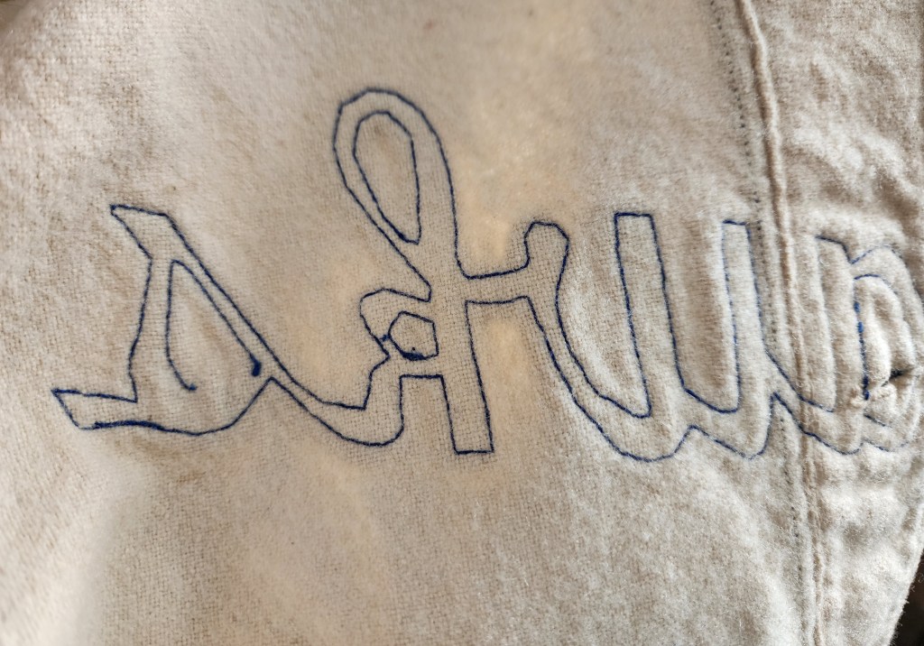 - Lettering: “Seahawks” script adorns the chest. Two-inch “N A V Y” letters are affixed to the left sleeve. Both are made of royal blue athletic felt.