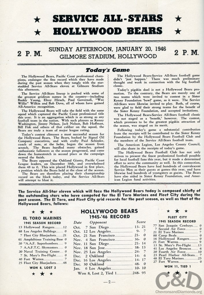 View or print the entire 1946 Service All Stars vs Hollywood Bears game program.