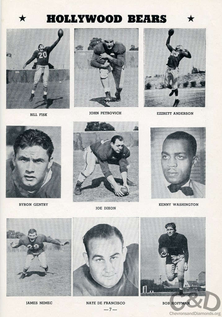 Los Angeles’ Gilmore Stadium played host to what should have been a star-studded gridiron battle in front of 26,000 fans on January 20, 1946. The hometown Hollywood Bears whose backfield was familiar to the Gilmore faithful as former UCLA standouts Kenny Washington and Woody Strode faced off against Elroy Hirsch (future Pro Football Hall of Fame inductee) and Paul Governali (future College Football Hall of Fame inductee). Instead of an abundance of offense, the fans witnessed 11 total turnovers and 301 total yards of offense.