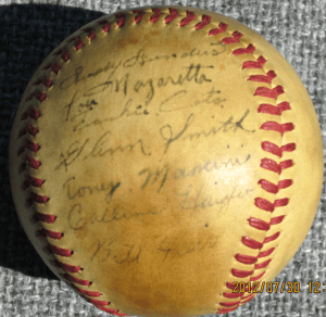 The signatures on the ball are crisp and clear yet I was unable to correlate them to any of the known players on the 71st Infantry Division team roster (source: eBay).