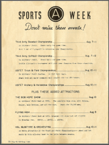 The back of the program shows that Bob Hope was scheduled to be one of the performers for the troops attending the championship games.