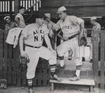 Though no photographs are available, one of the most legendary Brooklyn Dodgers players, Gilbert Ray Hodges donned the flannels of the Marine Corps on the diamond. Fresh from his first games as a rookie with the “Bums” in October of 1943, Hodges entered the war as a Marine ultimately assigned to the 16th Anti-Aircraft Artillery Battalion, 5th Amphibious Corps on the island of Kauai in the Hawaiian Islands. Months later, Gil would participate from April 1 through October 6, 1945 in the assault, occupation and defense of Okinawa Shima. Airing a few years ago on the History Channel’s American Pickers (episode: Mike’s Holy Grail – original air date: April 26, 2012) one of the show’s stars, Mike Wolfe, discovered a box filled with a dozen or so of the WWII-era Marines baseball uniforms in a warehouse belonging to the daughter of a former Army/Navy surplus store owner. The majority of the flannel sets were so dirty, worn, and in some cases tattered, that they appeared to have been packaged up immediately following the ninth inning of the last wartime game played.