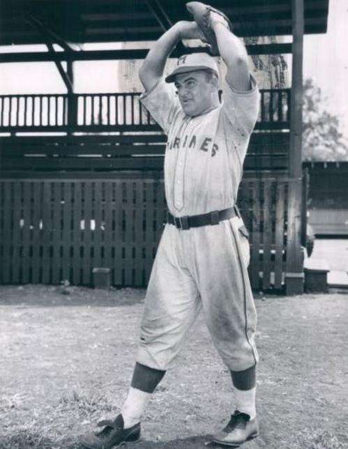 Brooklyn Dodgers and U.S. Marines pitcher, Boots Poffenberger demonstrates his wind-up (source: Gary Cieradkowski)