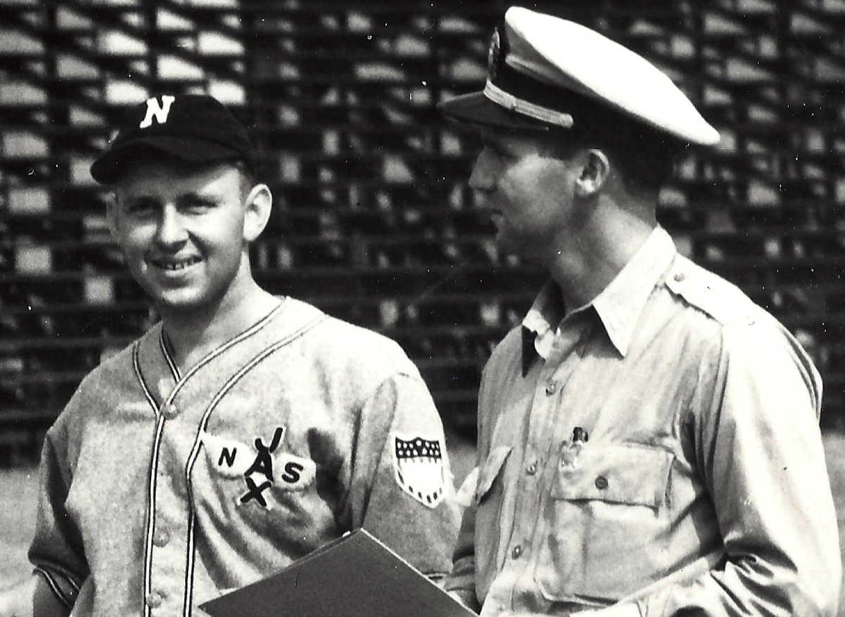 This close-up of the NAS Jacsonville team photograph shows the shield patch with the obscured rectangle over the top of the vertical stripes.