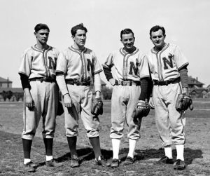 Norfolk Naval Training Station Bluejackets. Left to right: Walter Masterson, Fred Hutchinson, Charlie Wagner, Tom Early (source: Hampton Roads Naval Museum).