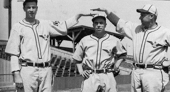 Left to right: Charlie Welchel, Pee Wee Reese and Hugh Casey of the Norfolk Naval Air Station Airmen baseball team (source: Virginian-Pilot).