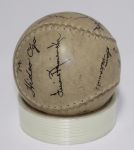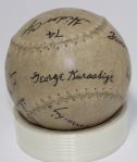 The softball includes a period-correct box (which is missing the top) with the GoldSmith Official label. The label shows the 12-inch softball to be “Concealed Stitch” model (the very faint stamping on the ball itself corresponds to the box). A cursory search for online listings shows an abundance of this model of softball (inclusive of boxes) with very little interest and low listing prices. However, with the history and the signatures on the Nisei ball, it garnered considerable interest, selling for nearly $300.