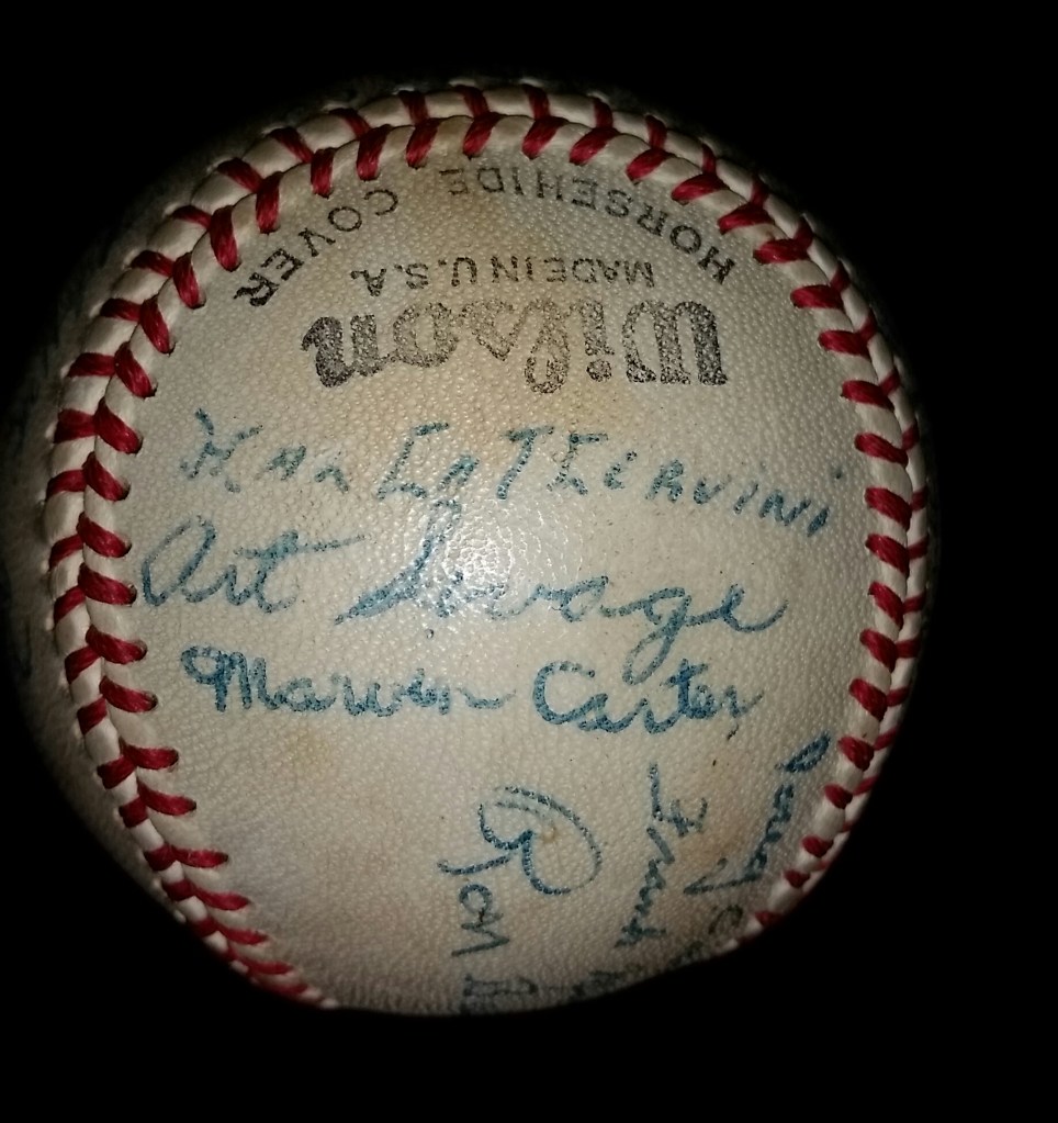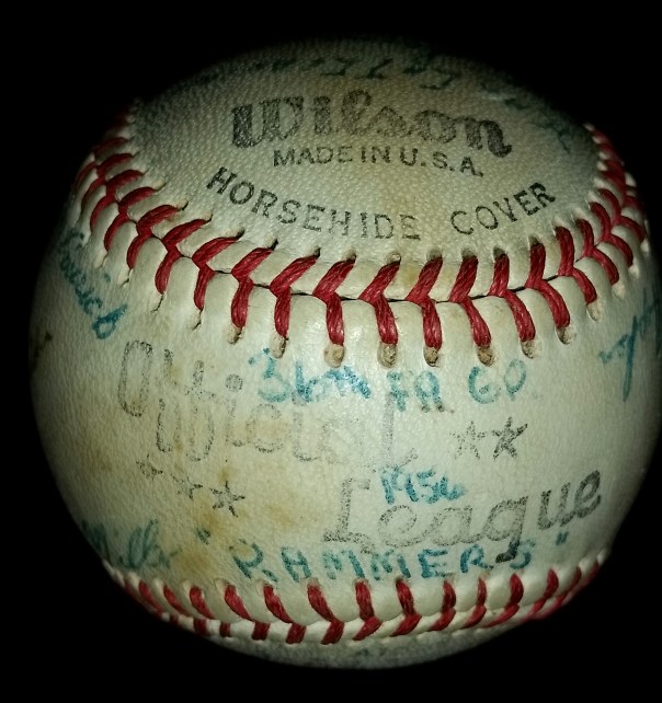 While I have been able to clearly read 15 of the signatures, there are four others that are difficult to discern and still one more that is severely faded and entirely illegible. With the ball in hand, I have another research project (similar to the effort that I experienced with a WWII presentation cigarette box) to determine if any of the signatures on the baseball are from men who might have played professionally or, perhaps to find if one or more are still alive. I can imagine how fulfilling it would be to interview these men about their time in the Army and their ball-playing experiences.