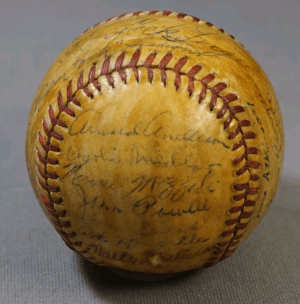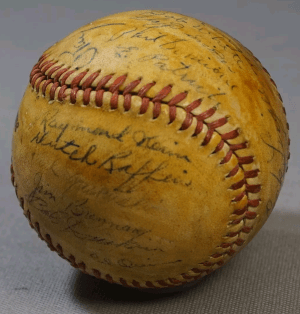 To many collectors, having a ball with signatures from a handful of minor leaguers and three non-star major leaguers wouldn’t merit much interest or be featured in a collection. Nevertheless, this ball is significant as it originates from games that were, to many men and women serving during WWII, distractions from the rigors and monotony of war giving them a fun departure from the harsh reality and a taste of the normalcy of home. This ball is a cherished addition to my collection and will serve to demonstrate how men from the highest levels of the game competed alongside of average Joes demonstrating unity in the fight against a common enemy in the cause of freedom from tyrants and oppression.
