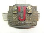 The history of awarding medals for sporting proficiency dates (at least) as far back to the establishment of the modern Olympic Games in 1896 when victorious competitors were awarded a silver medal and, as was done in the ancient games, an olive wreath. Runners-up received a bronze medal and wreath (the three-tiered medals of gold, silver and bronze commenced with the 1904 St. Louis games). Today’s fans of the game of professional sports are familiar with the practice of championship team members being presented with rings commemorating their victorious season of competition, a practice that began in 1922 following the New York Giants World Series. In the years prior, individual team members were presented with varying jewelry; pocket watches, pins, watch fobs and medals.