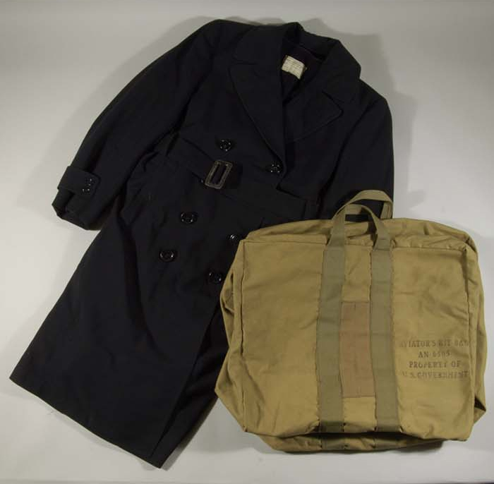 Pesky’s overcoat and flight bag were part of this $2,000 group (Hunt Auctions, LLC).