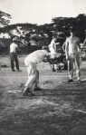 One of the baseball photo groups that I acquired in the last few years was listed by the seller as containing 14 images supposedly shot in New Guinea and the Philippines. I didn’t hold out any hope that the seller was accurate and purchased the images solely based upon the content of the of the images. When the package arrived, I took stock of photograph and saw that several had been inscribed, most likely by the veteran. Judging by the the terrain and surrounding flora, there is no reason to doubt the inscriptions (some are noted in New Guinea and others from the Philippines).