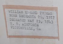 Searching for anyone with such a common name as William Thomas can be exhausting but when there are multiple details such as birth and death dates, narrowing the results is exceedingly simplified. One of the top results that surfaced was a link to a player profile page from, perhaps one of the two most helpful military baseball research sites (baseballinwartime.com and baseballsgreatestsacrifice.com) on the intranet. Aside from the confirmation of the dates of birth and death, the fact that the airman listed on the page was stationed at Victorville and played for the base’s team, the Victorville Bombers. Where this story took a bit of a turn was in the account(s) of his tragic end.