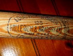 Last year, I obtained an early 1950s store model, Ferris Fain signature bat that had seen a lot of use and abuse. In addition to the heavy wear, accumulation of dirty grime and house paint spills, the bat had extremely faint manufacturer’s stamps and the player’s signature mark was nearly impossible to see. Professional model bats (for game use) have deep and distinct, burned-in markings that are quite difficult to obscure with use and time but the same is untrue for these lightly-marked store-purchased pieces of lumber. Rather than the burned-brands, thes Louisville Sluggers have foil-stamped (the stamps are subtle) marks that get worn or rubbed off with use. By no means am I a vintage bat expert but I have some excellent resources to draw from. In terms of Hillerich and Bradsby (maker of the most famous brand, Louisville Slugger), this reference is very detailed in providing information to discern age and models of ‘Slugger bats.