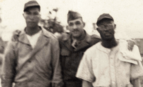When I saw an auction listing for a group of two or three small snapshots that were seemingly removed from a veteran’s wartime photo album, I jumped at the chance to add it to my collection as one of the images showed a group of African American soldiers wearing flannels and army uniforms. The photo, though out of focus and poorly exposed, is (to me) an invaluable piece of history. When I shared the photo with a group of baseball collector colleagues, one of them called attention to who he suspected was a notable professional ballplayer in both the Negro and Major leagues.