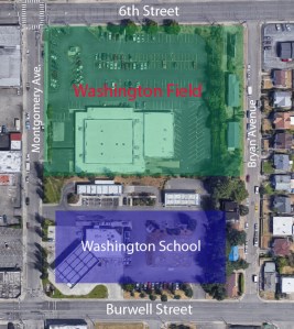 Washington Field, dedicated in 1930 is highlighted in green might have served as the location of the game played between the Seattle Indians and the USS Lexington team.