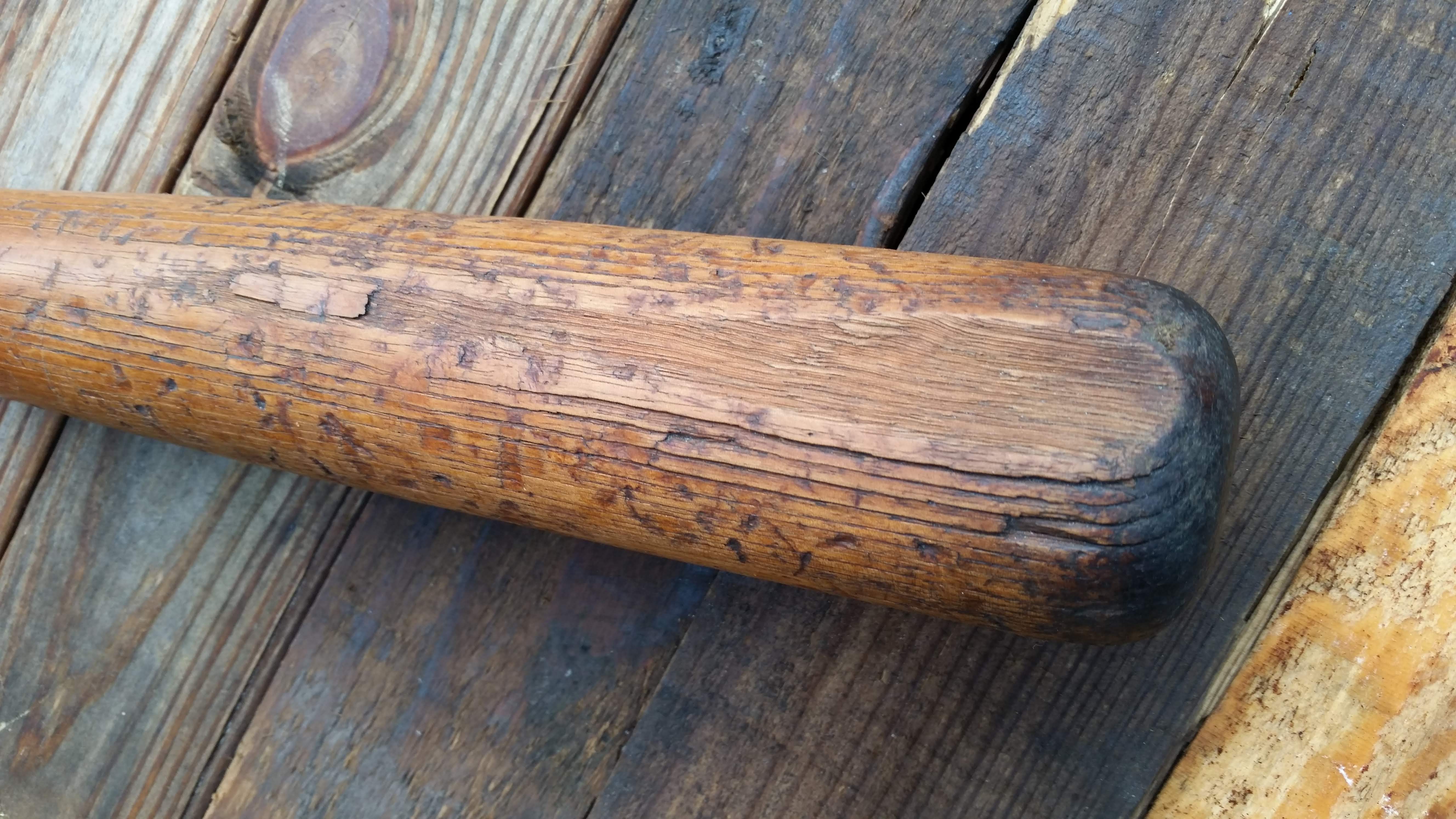 A few layers of wood have peeled away leaving this dished-out flat area opposite to the markings and William’s foil signature.