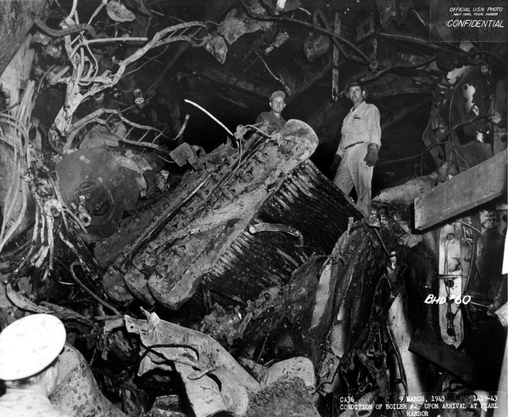 The USS Minneapolis was saved by the heroic efforts of her crew (including, no doubt, those by the young electrician’s mate, Oscar Sessions) enabling her to make her way to safety where temporary repairs could be made. Her damaged bow removed and her #2 fireroom open to the sea and completely flooded, the ship began her perilous journey to Pearl Harbor as she suffered propulsion casualties, massive flooding and a very slow speed, Minneapolis departed Tulagi on December 13, 1942 arriving in Hawaii on March 2, 1943 after a harrowing cross-Pacific journey. With the ship out of action for more than a year as she underwent repairs in Hawaii and at Mare Island (in San Francisco Bay), many of her crew were transferred to other ships and shore commands. Electrician’s Mate First Class Sessions was assigned to Submarine Base Pearl Harbor on March 22nd, less than three weeks after the ship arrived in port.