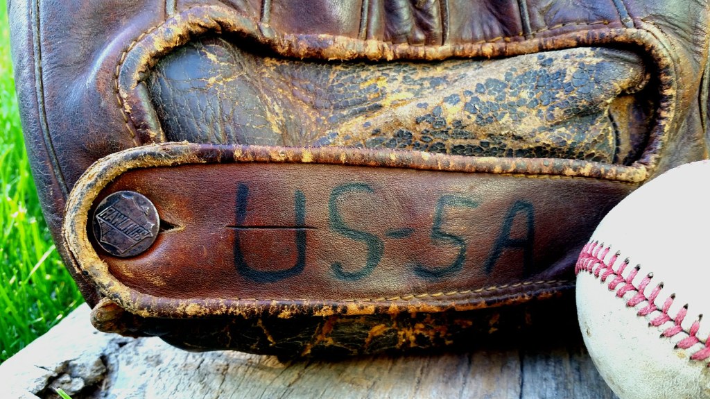The availability of authentic military baseball equipment can vary depending upon what one is seeking for their collection. For me, bats and balls have posed the greatest challenge in locating. To date, only one confirmed wartime sphere has been secured. When it comes to glove leather, I have managed to secure two stamped WWII gloves – both of which are GoldSmith Elmer Riddle signature models (one marked, “U.S. Army” and the other, “U.S. Navy”). As a collector of militaria (in addition to baseball-specific military artifacts), locating personally-used and identifiable pieces is far more interesting and lends to greater satisfaction when the results of researching the veteran that is associated with or connected to the piece.