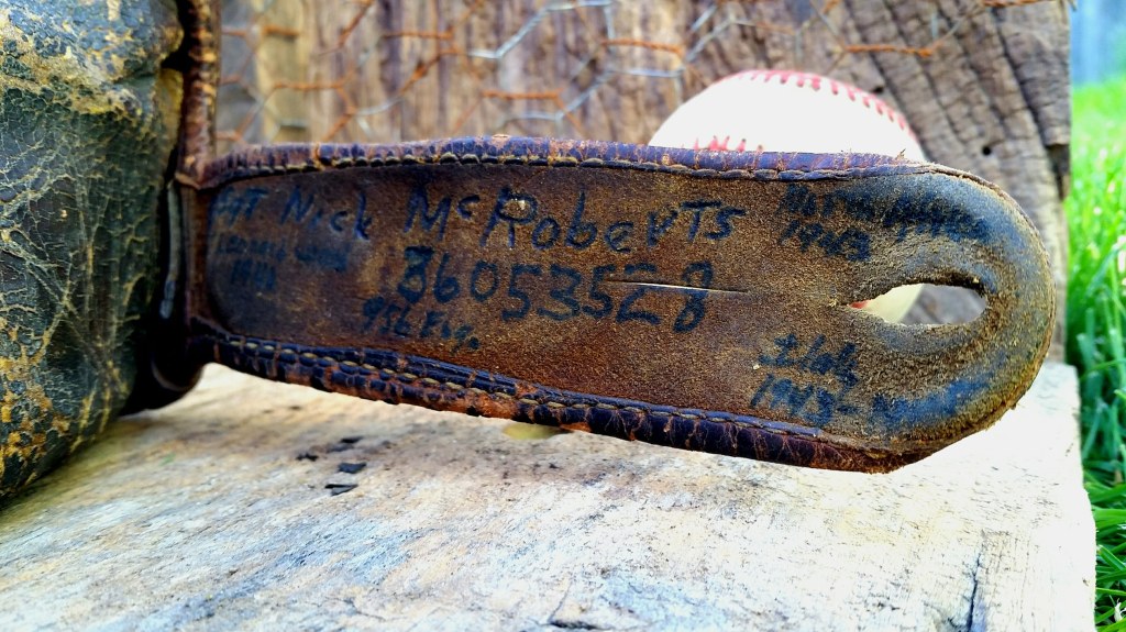 I am left to ponder the idea that Staff Sergeant McRoberts possibly carried this glove from the United States to the African Continent, on to Italy and then back home leaving it soiled with Algerian and Italian dirt to co-mingle with the soil of Central Illinois.