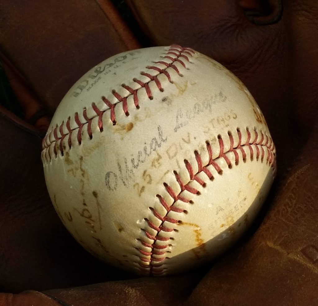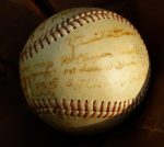 Autograph collectors wouldn’t give either of the two signed balls in this collection much of a look as neither of them has the signature from a superstar ball player. To a baseball militaria collector, a baseball signed by a team of no-name GIs is invaluable.