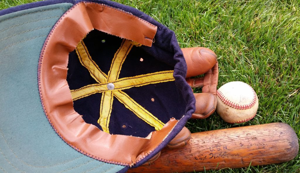 When a WWII-era navy blue wool ball cap became available, it was listed merely as a wool baseball cap that was part of a veteran’s estate. Discussion with the seller confirmed that the World War II veteran most-likely played baseball during his wartime service as there were Navy photo albums (not for sale) that held some images of the sailor in his baseball uniform (though I could only take his word). The cap showed some wear but was in overall good condition so there was no hesitation to bid on it.