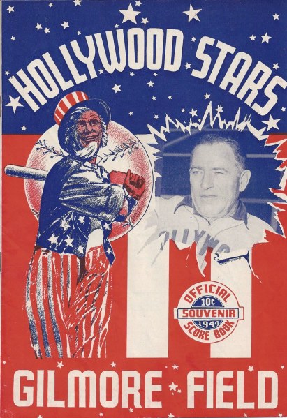 Two of the programs that were part of Steven’s estate were from separate exhibition games hosted by the 1944 Hollywood Stars at Gilmore Field. Each program shares several components including the patriotic front and radio station advertisement on the back. What differentiates the books are some of the internal pages including the scoring sheets (all unused), rosters and season analysis commentaries. Using the information, I was able to determine that one of them was created for the June 19th game in which the Sixth dominated the Stars on Ruffing’s pitching and a bevy of singles by the batsmen.