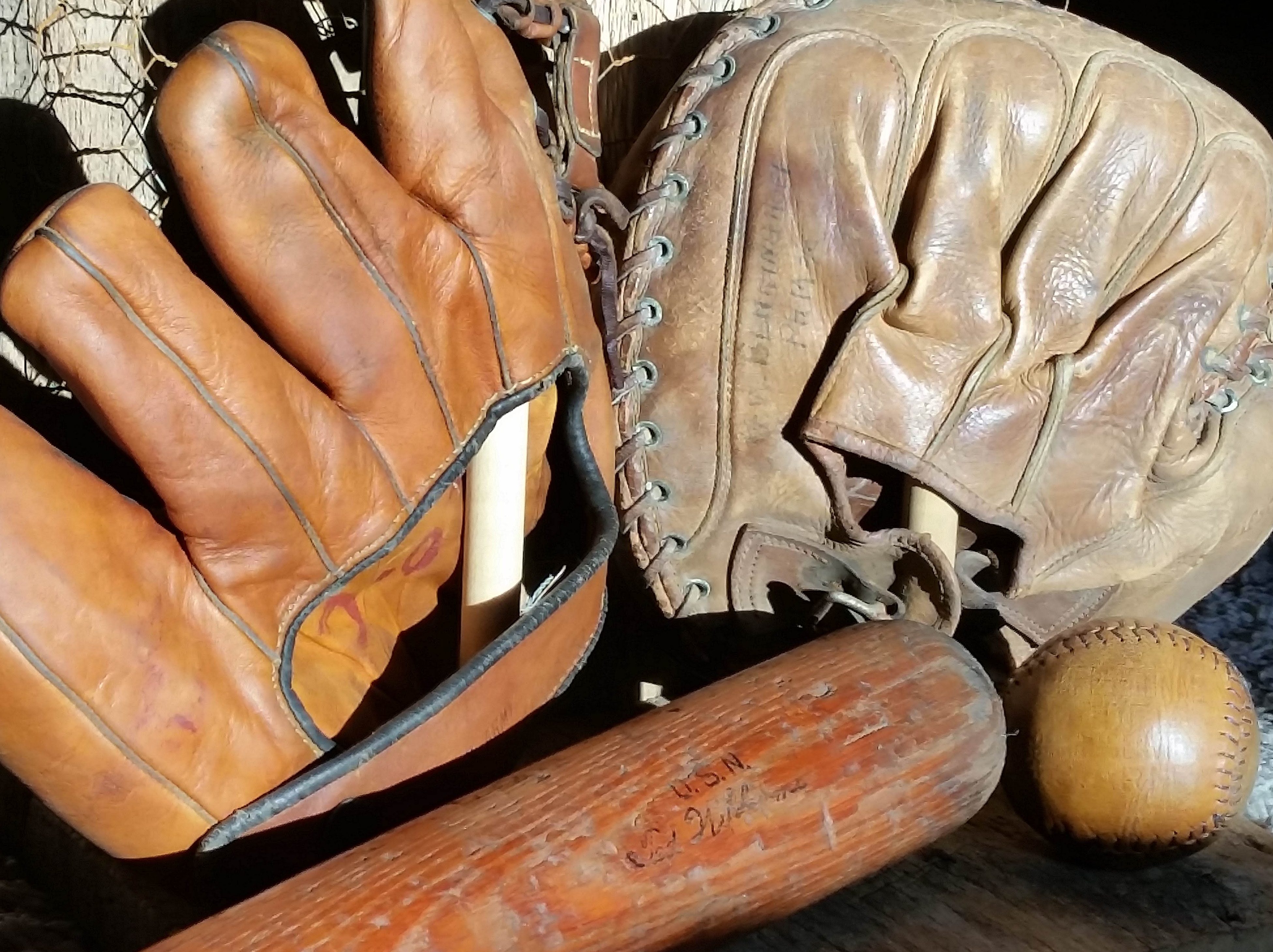Our first Don Droke baseball creation was made from a fielders glove marked with “U.S. Army Special Services” though the faint stamping is indistinguishable in this image.