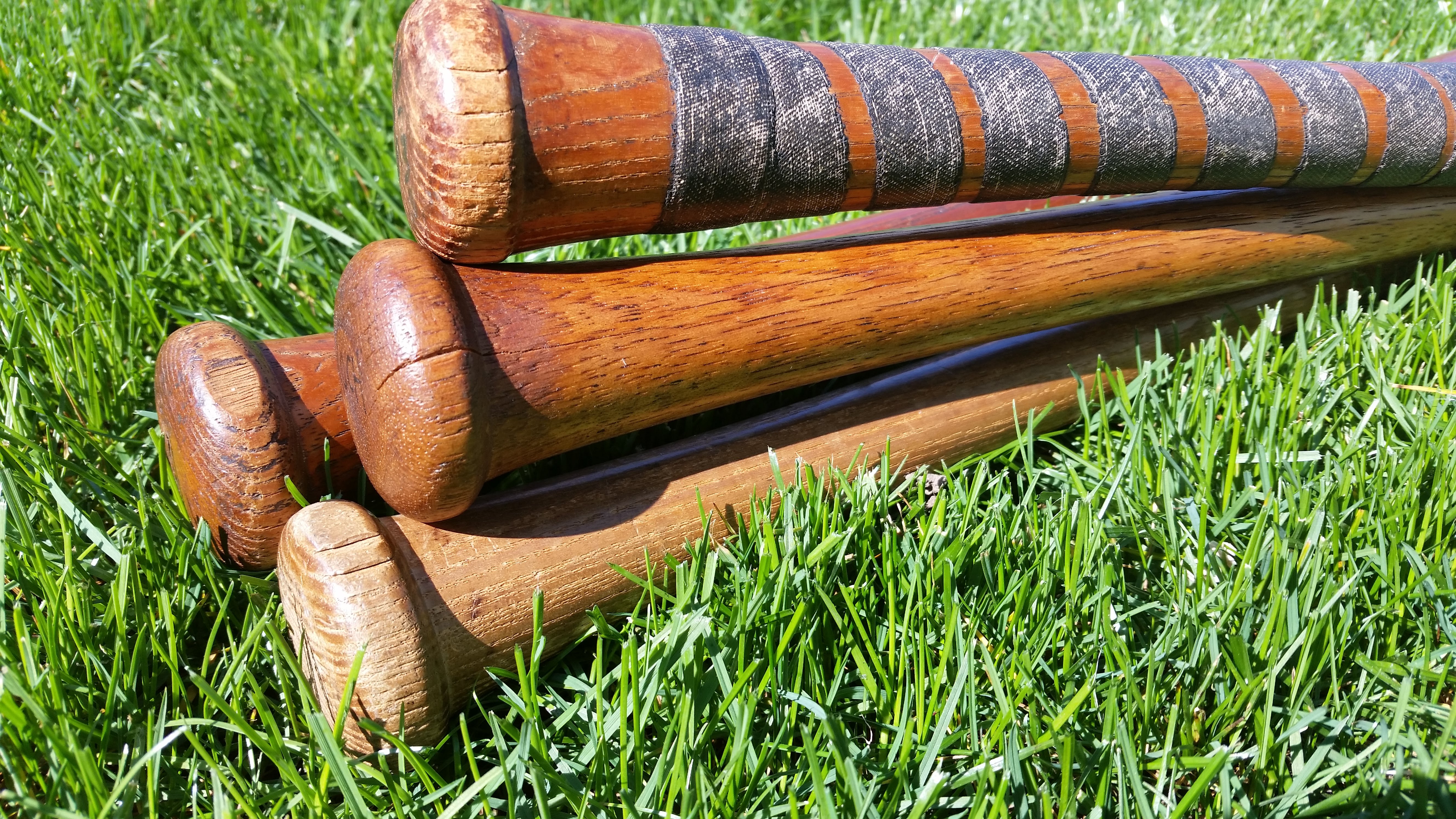 Showing the handles of these “war clubs” used by service members during WWII, obvious signs of wear are exhibited (Chevrons and Diamonds Collection).