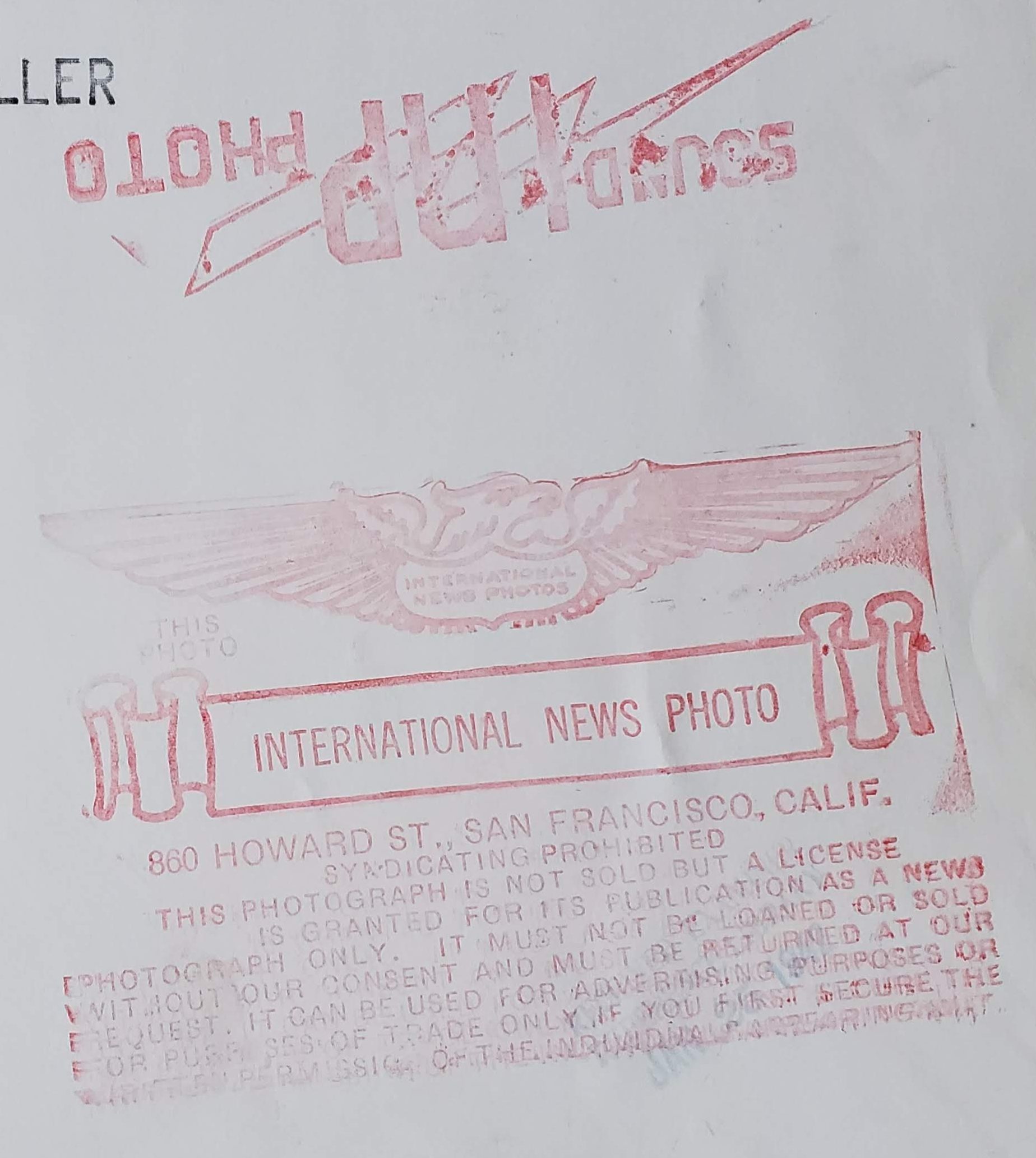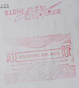 Aside from the traditional International News Photo stamp, this 1942 stamp also features the INP Sound Photo’s stamp with a lighting bolt.
