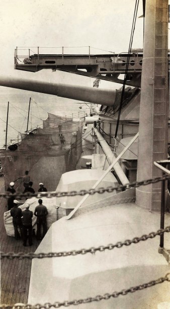 One of the vintage photos within our library was very reminiscent of that shipboard volleyball. Captured in the early 1930s aboard the battleship USS Tennessee (BB-43), the image demonstrates the level of competition and how serious it was taken by personnel aboard ship (see: Despite the Auction Loss, Victory is Found in the Discovery) as indicated by the elaborate batting cage constructed on the ship’s starboard side, beneath the trained number-3 turret. Unlike a land-based military team, the men aboard ship need to find creative ways to work on the fundamentals of the game and the men of the Tennessee improvised and adapted to address their need.