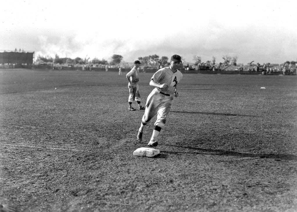 For the ballplayers, their duties didn’t solely consist of playing games. Some of the men, such as Max West, served as ground crews facing dangerous and troubling situations when the aircraft returned from missions. “I saw some horrific crashes … and we on the ground crew would have to go in and, in all honesty, mop up the human carnage,“ stated West*. “One time I went in to help, we pulled out this pilot. I do not remember his name,” west continued, “but he had just flown all of us to Saipan for a ball game a few days before. We pulled him out and got him on a stretcher. He was burned pretty badly, and all I saw were his eyes. They were so white and he looked right at me, his lips kind of smiled and he just died. His face just went blank.”