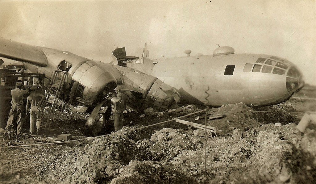 Fortunately, the entire crew walked away from this failed landing of the 497th Bomb Group’s “Irish Lassie.” Chevrons and Diamonds Collection.