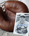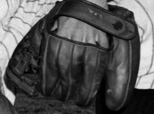 The glove on Woodling’s hand appears to be a GoldSmith MacGregor “DW” Elmer Riddle model. Clearly marked on the wrist strap is the Navy’s “U.S.N.” (Chevrons and Diamonds Collection).