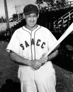 “Enos Slaughter, clutch hitter with San Antonio Air Cadet Center of Service Men’s League – San Antonio, Texas. Ex-Card star in slump, but drives in runs in the clutch…will also hit in clutch when he goes after Japs, Wops and Hitler’s HEELS.” – original 1943 caption (Chevrons and Diamonds Collection).