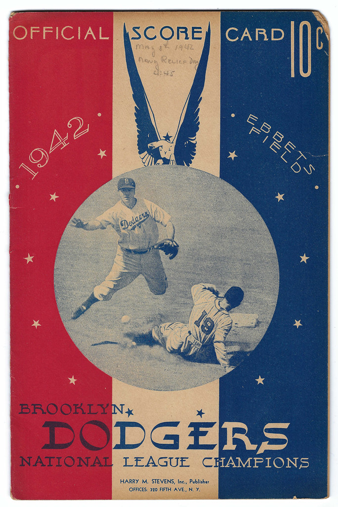 One of the earliest Navy Relief fund-raiser games took place on May 8, 1942 at Ebbets Field in Brooklyn, New York, with the Dodgers playing host to their crosstown National League rivals, the Giants. Brooklyn, the reigning champions of the National League, held a 1.5-game lead in the league over the Pittsburgh Pirates. The visiting Giants were already 5.5 games behind, sitting in fifth place after 22 games in the new season. When the game was played, it was one of 16 scheduled events to raise money benefiting the service relief organizations. The game at Ebbets was arranged by Brooklyn’s former team president, Leland “Larry” MacPhail, who had resigned his position at the end of September, 1941 and returned to the Army after an absence of more than 20 years, following his service during the Great War.