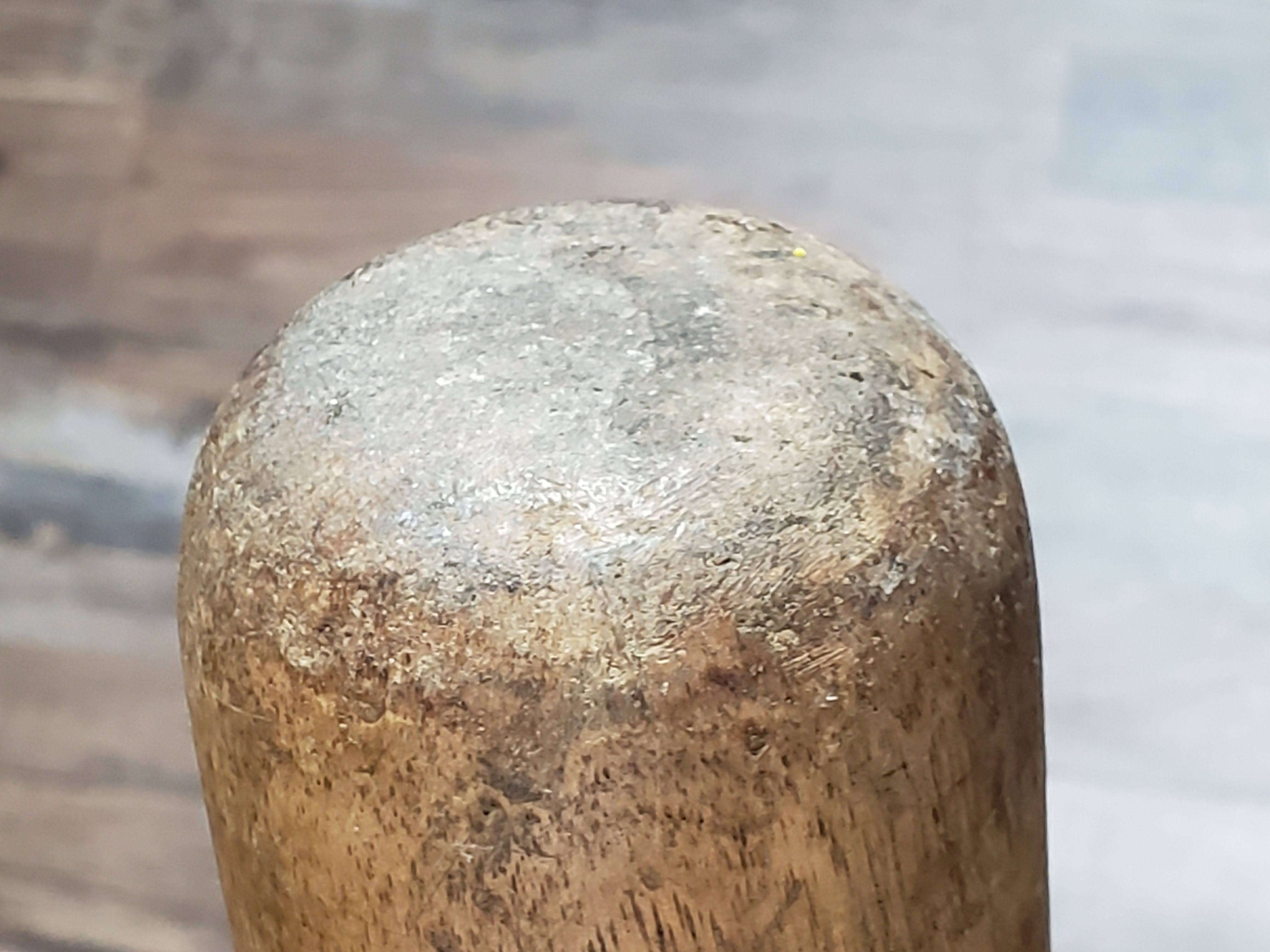 Showing some storage wear on the bat’s end, the hickory is a bit chewed-up (Chevrons and Diamonds Collection).