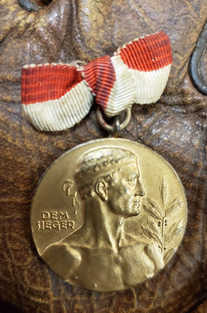 After acquiring the medal awarded to his teammate, Earl Ghelf, a year earlier (see: European Theater Baseball (the 29th Infantry Division Blue and Grays at Nurnberg)), we were keenly aware of the significance of the piece when a second medal appeared in an online auction listing. The engraving on the medal’s reverse was an identical match to our medal, prompting us to place a bid and hope for the best. When the auction closed, we were astounded at the minimal competition as our bid closed the deal. Upon its arrival, we were already challenged in researching the inscribed name as our attempts continued to reveal nothing. “J. DEBRATZ” was an absolute mystery and we were resigned to waiting and hoping for a research breakthrough.