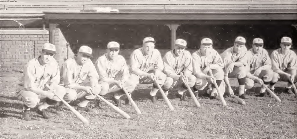 Max Bishop solidified his return to Maryland when he assumed command of the Naval Academy nine, commencing a 24-year run that left him with a 306-143 record and quickly assuaging the fears of the Midshipmen and alumni. The Lucky Bag’s commentary focused on the experience. “Capitalizing on his big league experience, Max was very evidently able to impart to his charges some of that fight and ability so necessary to be a successful ball club.” The team responded quickly to his guidance and instruction as they rapidly adapted to Bishop’s training regimen and baseball philosophy. “The wealth of material which Max found here had been thoroughly indoctrinated in baseball lore and was seemingly only waiting for the spark to set them off toward a really successful baseball season.”