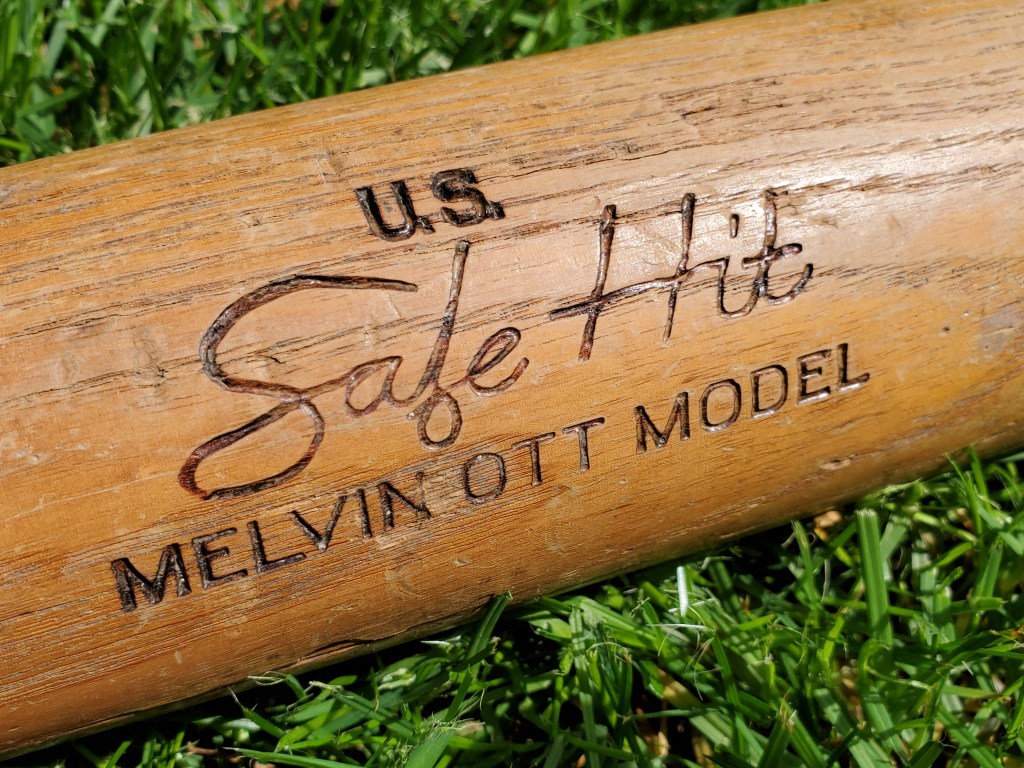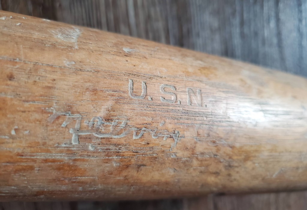 Recognizing Mel Ott’s Hall of Fame playing career along with his time spent with the troops, we acquired a “U.S.” marked Melvin Ott Model H&B Safe Hit bat that had some condition issues but would make an aesthetically pleasing display once meticulously cleaned and conditioned. Just weeks after receiving the Safe Hit Ott model, a “U.S.N.” marked, Mel Ott signature model became available, which we did not hesitate to add to the collection. The condition of the U.S.N. bat was as close to “poor” as could be without being worthless in terms of collectability.