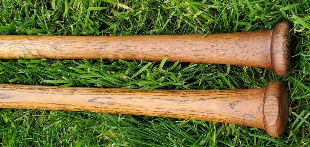 Our efforts to preserve these two bats resulted in two display-worthy artifacts. (Chevrons and Diamonds Collection).