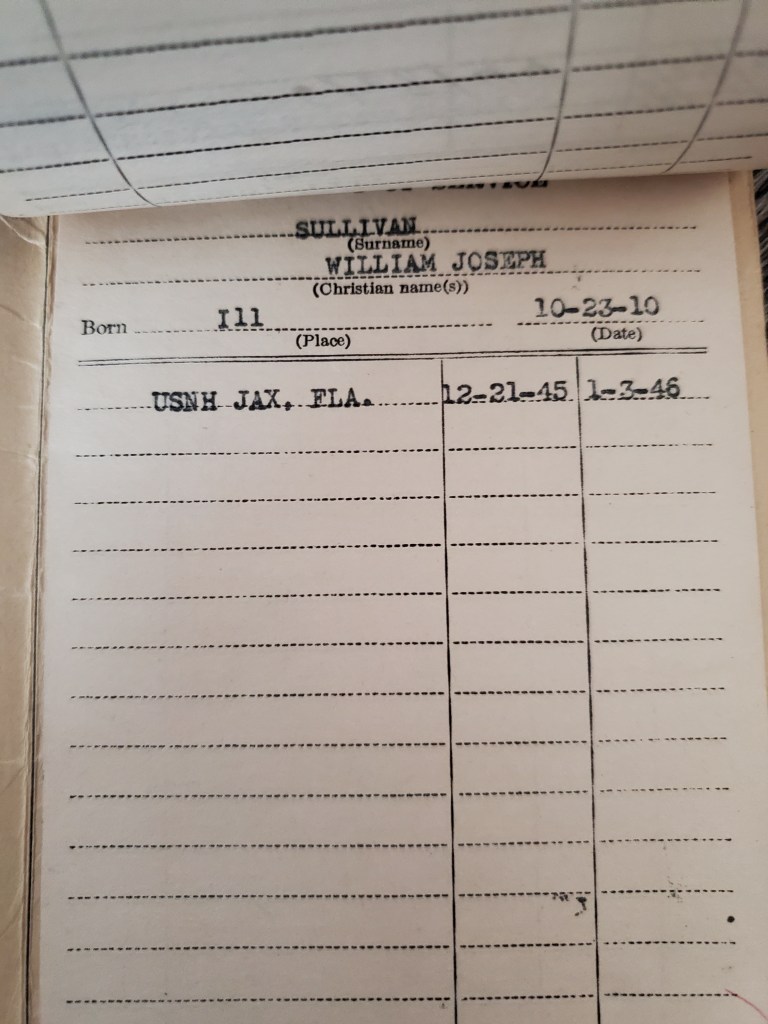 - U.S. Naval Hospital, Jacksonville, Florida 12/21/1945 – 1/3/1946