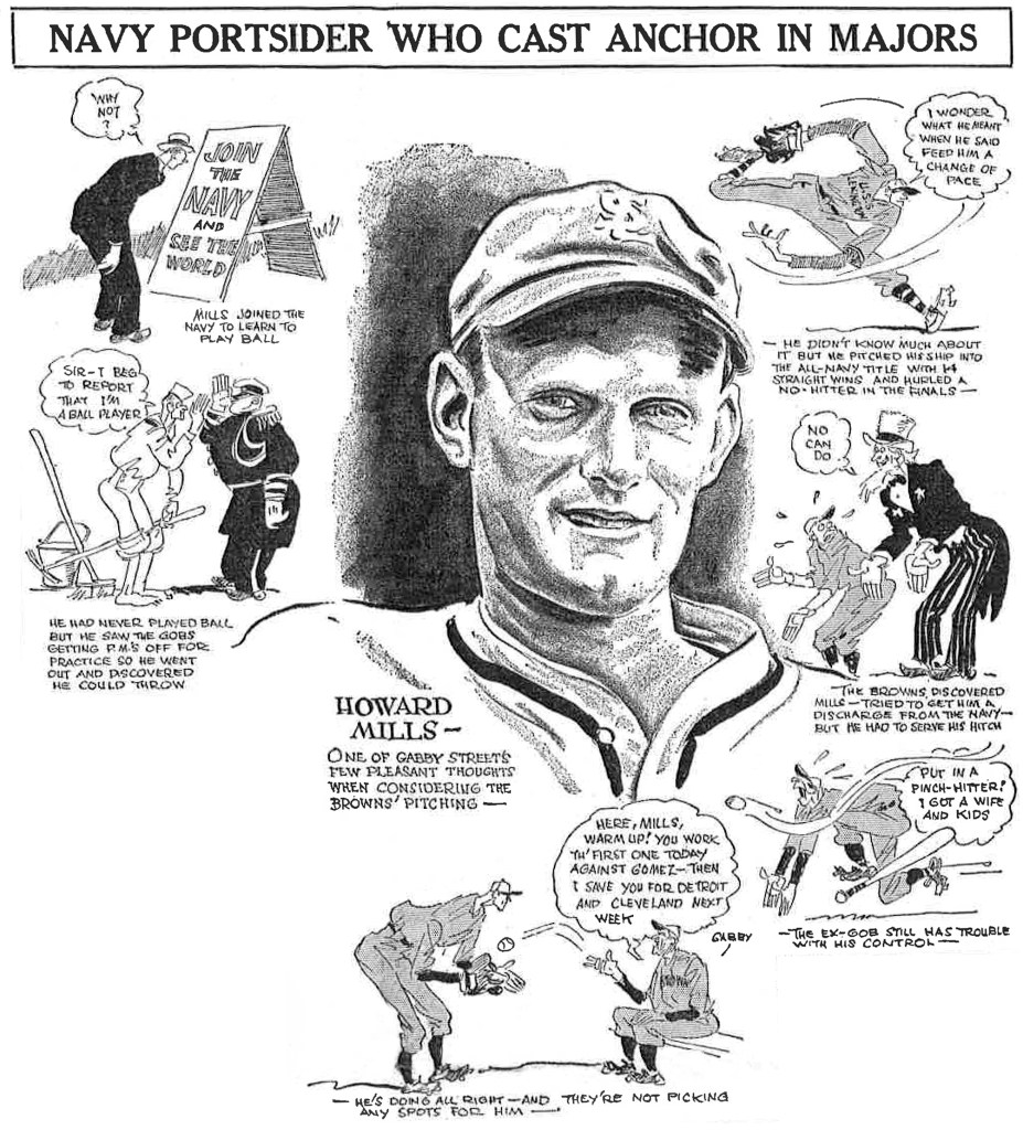 Ahead of the 1934 season, Mills was pressed by the Browns’ West Coast scout, Willis Butler, to make a commitment to the team. With four months left on his current enlistment, the head of the Browns’ scouting department, Ray Cahill, went to work on Mills’ behalf, working with Missouri congressman John J. Cochran in an attempt to secure an early release for the pitcher to report to spring training. With the Browns’ training camp well underway, the Navy relented and granted Mills his release from active duty on March 1, shaving one month off his two-year term.