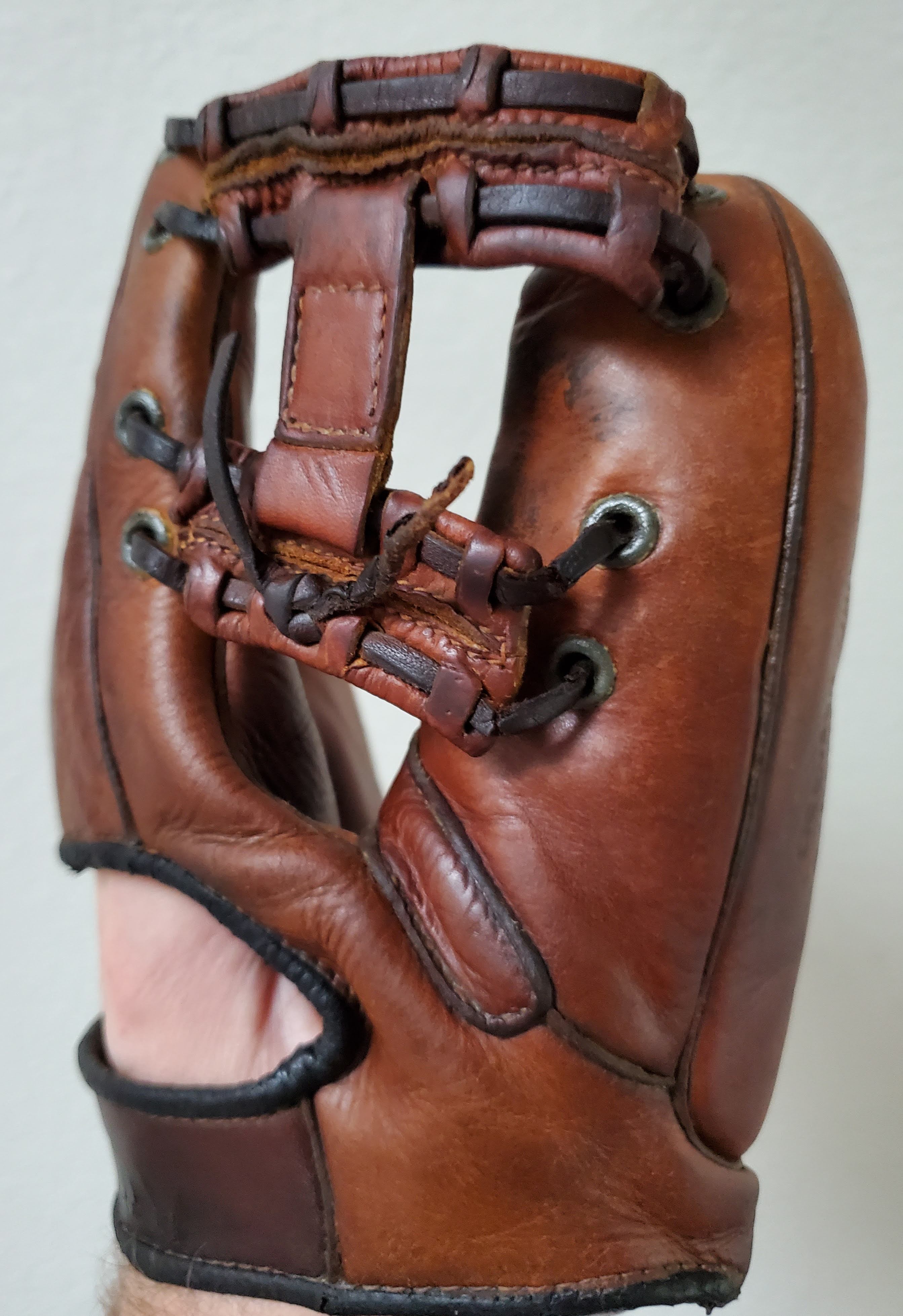 The webbing in this U.S.N. GoldSmith Elmer Riddle now looks as it did when the glove was new (Chevrons and Diamonds Collection).
